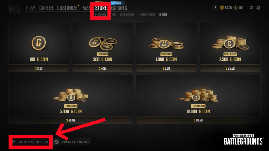 2. Go to the "Shop" tab > "Redeem Bonus/Gift Code".