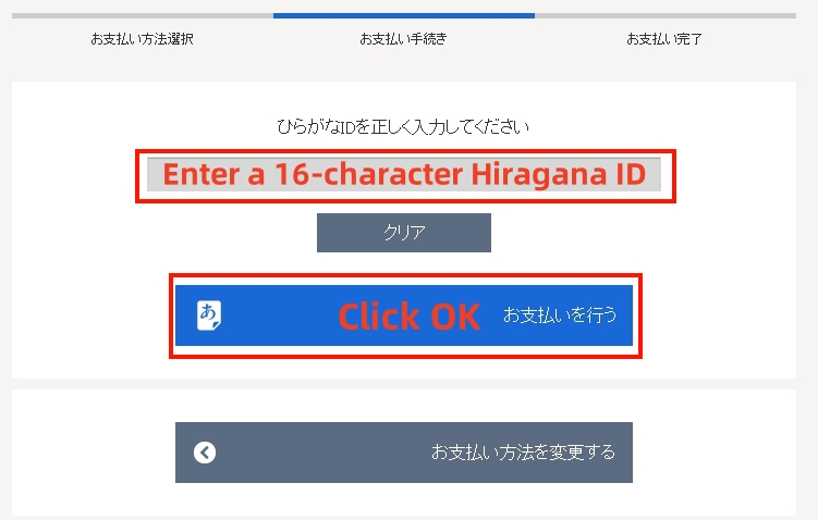 5. Select payment by Hiragana ID. That is, click below【ひらがなIDで支払う】